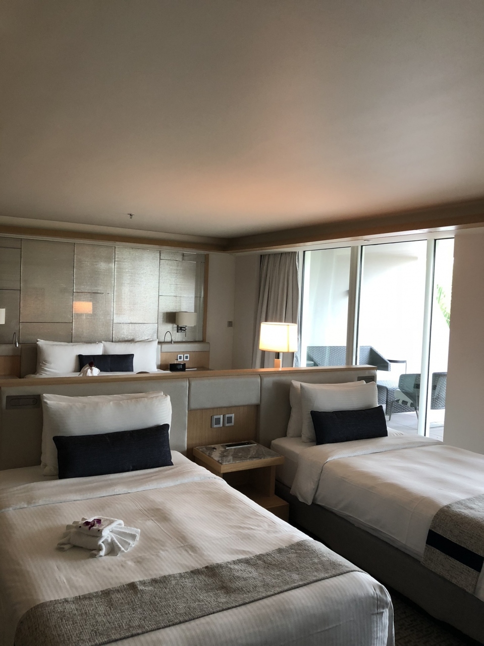 セントーサ島にある大型のリゾートホテルです。プールは広くて子供の足がつく深さのエリアもあります。朝食のビュッフェも十分だし、キッズルームもあります。家族連れやリゾートを好む人におすすめのホテルです。セントーサ島を巡回するバス乗り場も近いです。