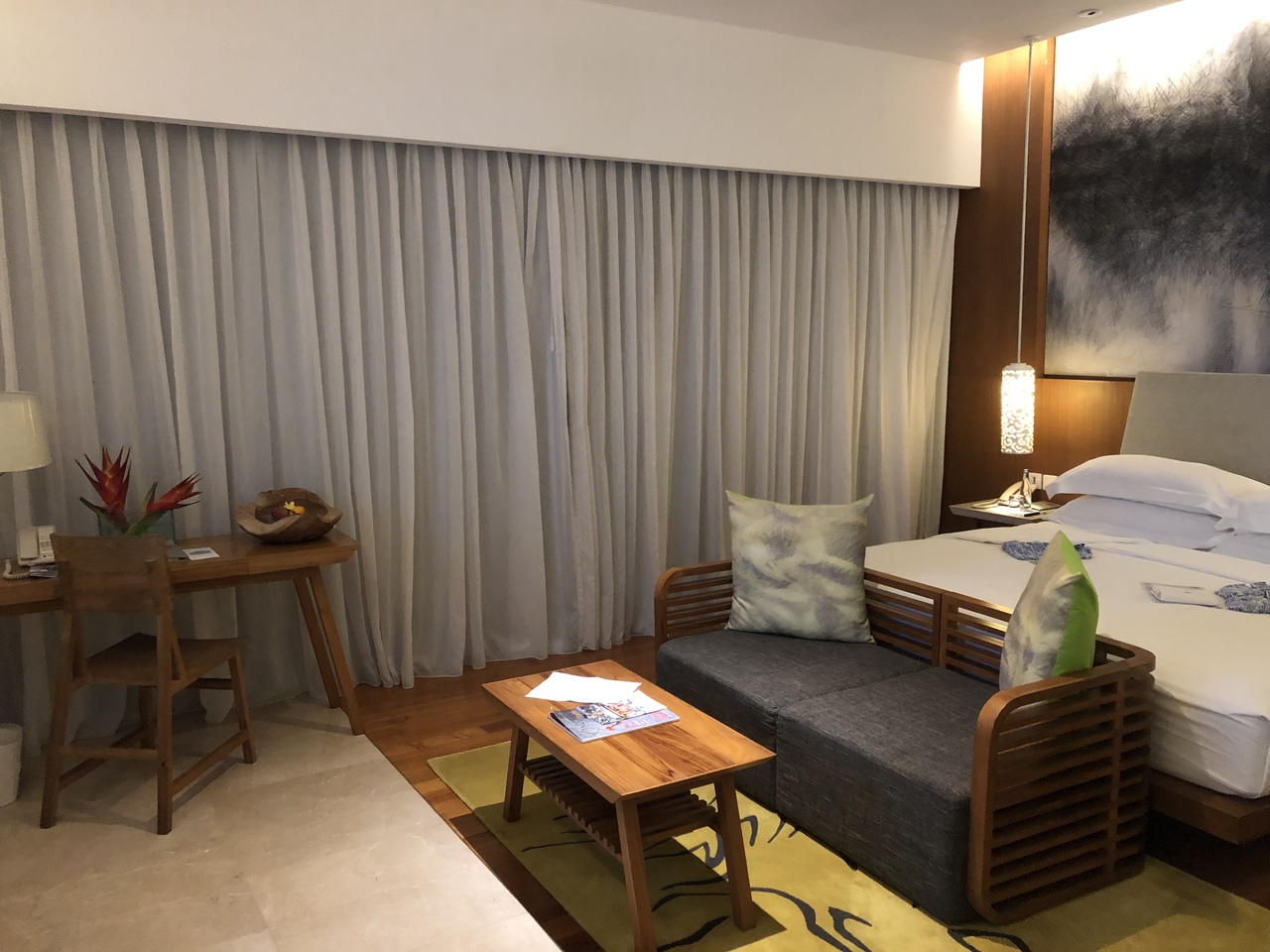 ホテルの造りはバリ風というより近代的な感じですが木に囲まれていて気持ちいいです。1階のプール沿いの部屋以外はベランダもプライベートが確保されています。部屋は1番下のカテゴリーでも十分な広さでダブルシンクです。朝食は多くはないですが美味しかったです。プールは広くありません。大人リゾートといった感じでした。