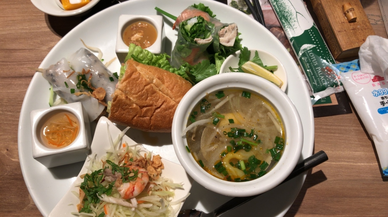 池袋の東武百貨店のレストラン街にあります。ランチで1000円以上しますがボリュームがあって美味しいです。プレートによってはバインミー 、フォー、生春巻など1度に色々楽しめます。お店、味もおしゃれなベトナム料理といった感じです。