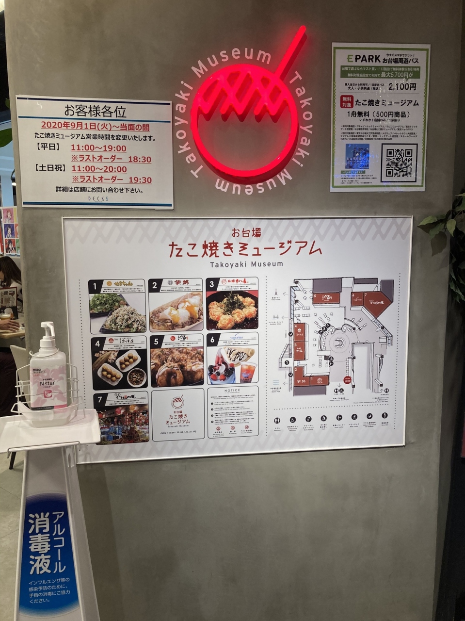 お台場のデックス東京ビーチの4階にあります。隣には台場一丁目商店街もあります。フードコートのようになっており、大阪の有名なたこ焼き屋が数店舗入っているので好きなものを選んで食べ比べすることができるので楽しいです。