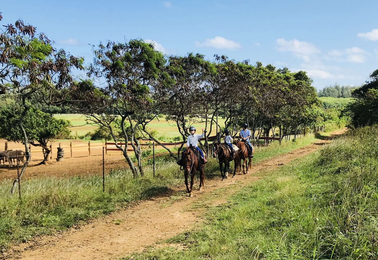 私が参加した子供体験の30分は、ポニーではなく、大きなお馬さんでした。5歳の息子は最初驚きましたが、大人と同じ馬に乗れる事に大喜びしていました。5歳なので、女性の方が1人ついて、馬を引いてくれます。楽しくて本当にあっと言う間の時間でしたが、ちょっとした坂道の上り下りもいきます。また、乗馬はできませんが、1時間コースの娘たちや主人も一緒に歩いてついてこれました。