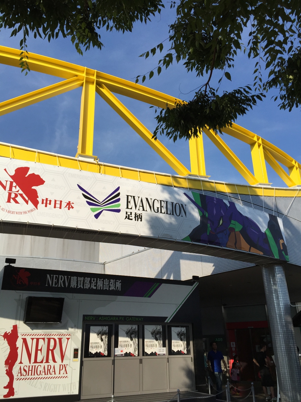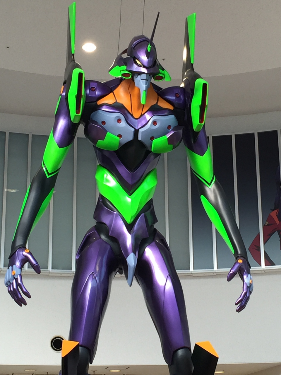 足柄サービスエリアで朝食をとりました。まず最初にビックリしたのは、サービスエリアの建物の入口前ににエヴァンゲリオンのフィギアがいくつもあったこと。そして、建物の中に入ると巨大エヴァンゲリオンが置いてありました!でかい~とサービスエリアの内容云々の前にそれにやられていました。