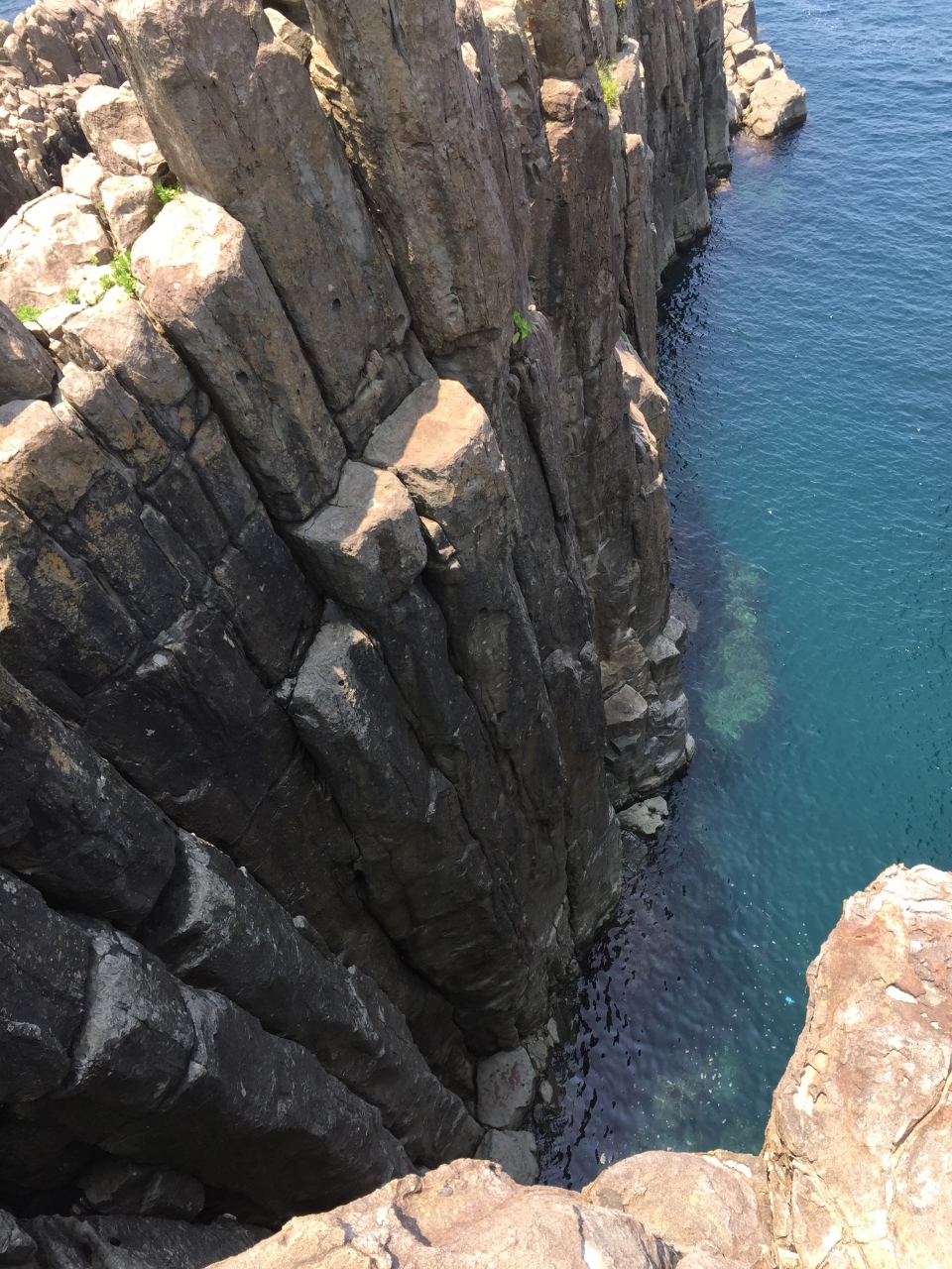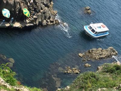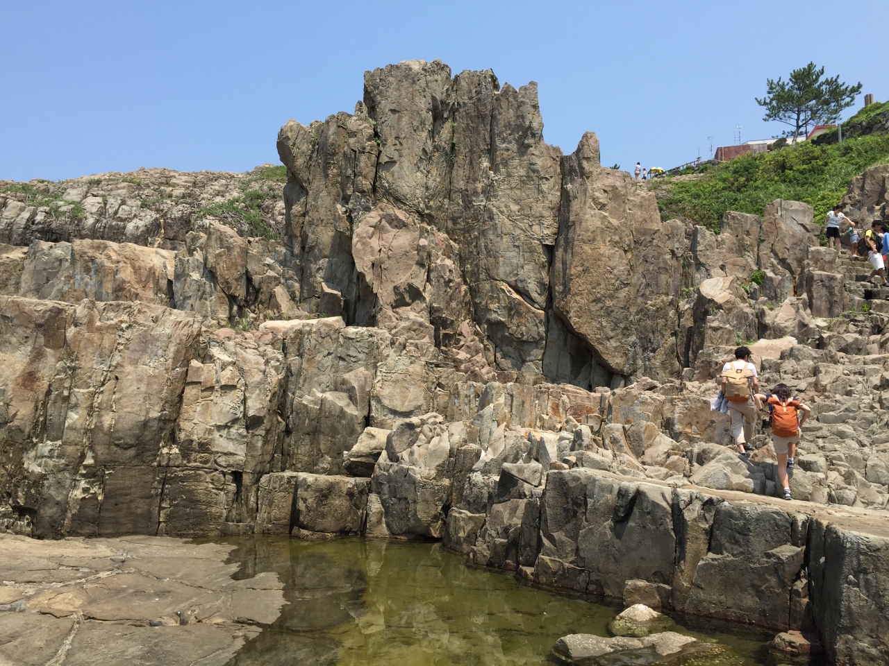 自殺の名所としてTVドラマの撮影場所として有名な東尋坊。果たしてどれほどの場所なのかと尋ねてみました。イメージでは寒々しく人気のない断崖絶壁という感じでしたが、実際は超一代観光地。夏だったからかもしれませんが、観光客でごった返していました。しかも、岩場には階段も作られており、海岸まで下りられる場所もありました。また、入り組んだ入り江に東尋坊を海からみるための遊覧船も出ているし、東尋坊タワーから岩場までには、レストラン・お土産屋さんがずらっと並んでいます。随分と明るい自殺の名所だこととやや食傷気味になりました。しかし、岩のぎりぎりに立つと確かに目がくらむようですし、遮るもののない景色はまさに絶景でした。