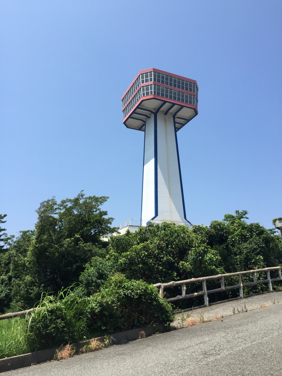 東尋坊タワーは昭和な雰囲気を残すゆったりとしたタワーです。蒼い空に青い海、そこに白と赤のタワーは、とても良く映えます。タワーからの眺めも絶景で、近くの海水浴場、越前海岸、九頭竜川河口、東尋坊、振り返れば白山連峰と見ごたえ十分です。1Fのお土産店では、東尋坊タワーのスノーボールや、近郊の鯖江市の眼鏡を意識してか、眼鏡パン(眼鏡の形のパン)などが売られていました。眼鏡パンはいいお土産になりました。
