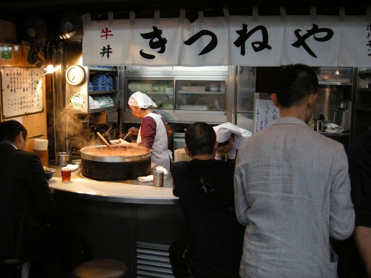 築地場外のきつねやはホルモン丼のお店です。朝6:30オープンで、昼ごろには終わります。メニューはホルモンを煮込んだものと、肉豆腐、牛丼ぐらい。お勧めはその煮込んだホルモンをドバッとご飯にかけたホルモン丼(850円)。なぜかこれが一番高いのですが。。。特別すご~く美味しいのかというとそういうわけでもありません。でも、なぜか前を通ると食べたくなるのですよね、これが。癖になるということなのでしょう。朝から普通にがっつり行けます。