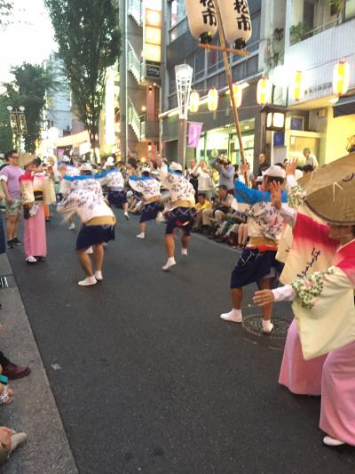 神楽坂まつりのメインイベント、神楽坂の阿波踊り。高円寺の阿波踊りに続いて東京でのでの阿波踊りとして定着したイベントです。何といっても圧巻は、神楽坂の坂を各連が踊りながら上がってくること。本場、徳島や高円寺の阿波踊り会場は基本的には平地ですので、こんな坂を踊りながら登ってくる様はなかなかここでしか見ることができません。また、登ったら下るのが坂道。下りの様は一転スリル満点?演者は、結構ひやひやしながら踊り下るそうです。