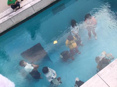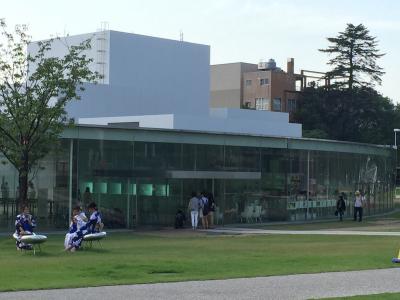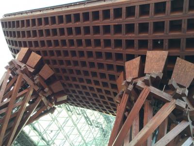 金沢21世紀美術館は、兼六園からすぐの美術館です。水の底にいるような体験が楽しめる有名な「スイミングプール」などがあります。しかしこちらは上から見るのはタダですが、下に入るのは有料。子供達はチケットを買っていろいろ楽しんだようですが、私は、無料コーナーだけですませちゃいました。しかし無料でも、広い外庭をぶらぶらしたり、離れたところで声のやり取りをする「アリーナのためのクランクフェルト」など結構楽しめるものが色々ありました。