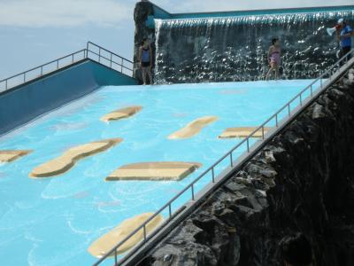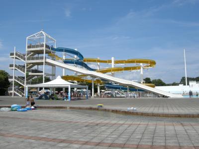 子供とプールに行きました。ここには、波のプールや流れるプール、スライダーは様々に4本もあって非常に楽しめました。また、あちこちに屋根のあるスペースがあり、利用者に優しいプールでした。波のプールは、最深2Mと深さはあるのですが、激しさという点では、しらこばとの方が上のように思いました。また、流れるプールも少し穏やか過ぎな気もします。飛び込みプールが船の上にあり、下の窓からその様をみることができます。これは非常に面白かったです。公園内に駐車場はありますが、園外の駐車場の方が近くて安いと思います。