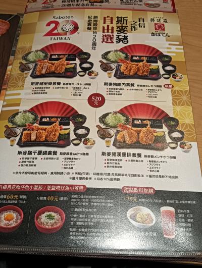 日本のとんかつの有名店、さぼてんの台湾支店のひとつです。台湾産の豚肉を使用していますので、とても柔らかく、ほくほくです。定食が、お薦めです。揚げ物が、苦手な台湾人もここのとんかつは、問題ないと言っていました。ちょうど、さぼてん開業20周年とかで、指定のとんかつ定食を食べて、数量限定の記念のグラスを頂きました。