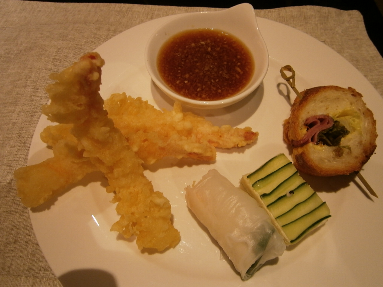 お二人様用のテーブルを必要とされる方は、予約(電話・サイト)必至です。君品大酒店台北6階にあり、午後3時から5時までの食べ放題です。席について、紅茶かコーヒーを注いでもらい、奥のほうから泰國料理、日本料理、アイスクリーム、プチケーキ、海鮮のコールドコーナー、パン・パイ・キッシュ関連、天婦羅、麺コーナーなどありました。泰國料理の生春巻、かつおの刺身、ボイル蟹・海老、海老の天婦羅に天汁に大根おろし、日本風ラーメンなど頂きました。通常@580台湾元。クーポン券使用で999台湾元/2名。
