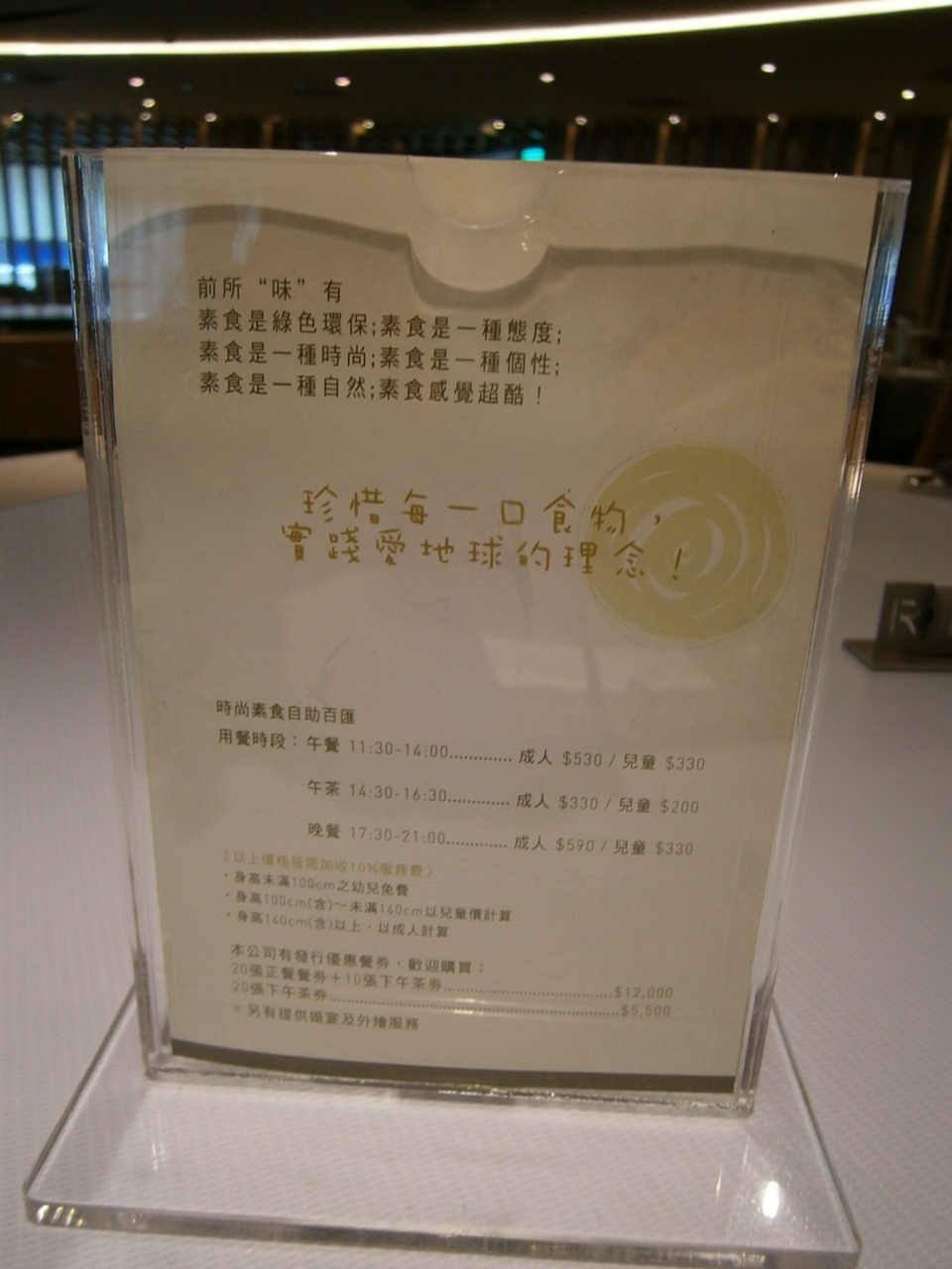 お薦めは、素食でありながら、麻辡臭豆腐や義大利式ピザ、リゾットやパスタ料理やその場で作る手巻きサラダ、コーヒーゼリー、亀ゼリーなどのデザート、フルーツ、コーヒー、ティーポットでサーブできる花茶などです。また、野菜料理(日替わり?)も豊富で、えのき茸や海苔で作った烏賊などなどあります。