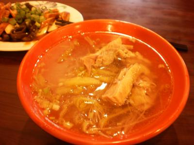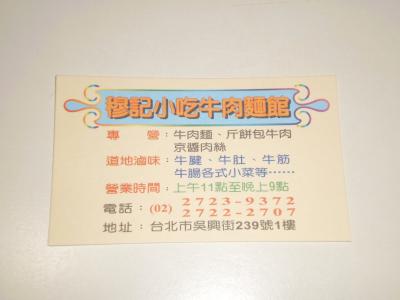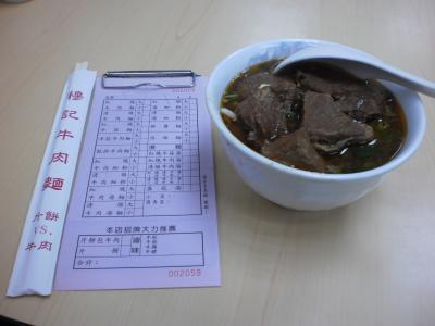 初め、御目当てのお店(台北市某有名牛肉麺店の父上様のお店)に行ったが、その時は、たまたま?閑古鳥。歩いてきた道に、店名は、以前(臺灣牛肉麺節)から存じていたお店があり、そこそこ客の出入りがあり、入りました。紅焼牛肉麺(小碗)を頼んだが、さらに何か言っている?菜譜(メニュー)を見せて、家常麺、冬粉(緑豆春雨)、もう1種類(失念)から麺の種類を選択してくれと・・・。家常麺を指定、程なくして、運ばれてきたが、見るからに小碗。麺をすくうと煮込まれた牛肉が、幾重にもゴロゴロと入っていて、嬉しい限りであり、麺にも腰があり、すべてにおいしい。再訪したいお店です。