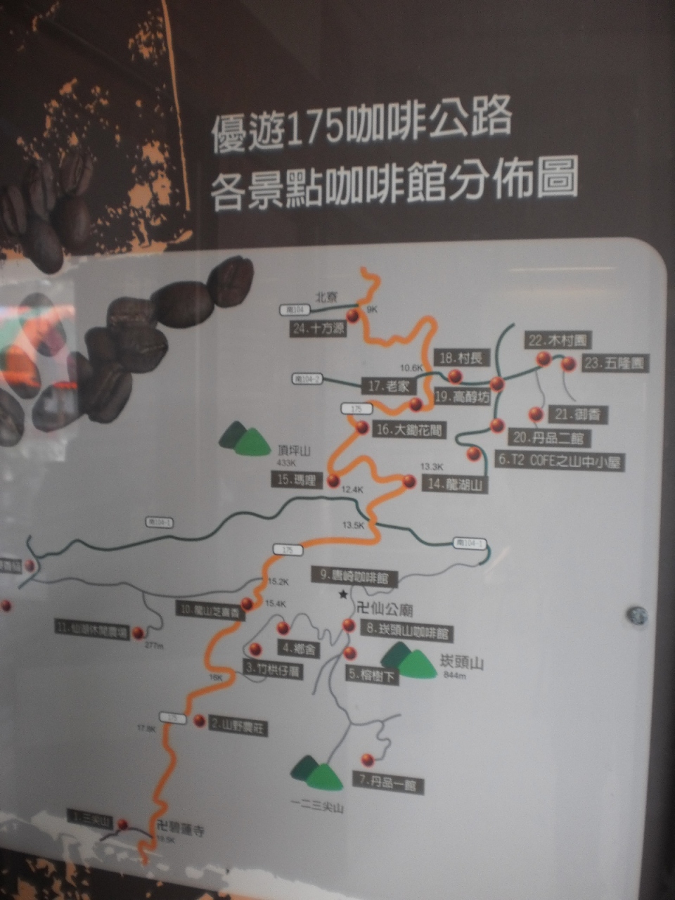 臺灣コーヒー([口加][口非])といえば、臺灣南投縣古坑(くーけん)のコーヒーも知名度がありますが、臺灣コーヒーの栽培は、日本統治時代に臺灣・東山あたり(現在、省道175線)から始まり、南米に苗を持って行って一大産地になったと聞いています(臺灣知人談)。コーヒーの種類としては、苦味もない香りのいい、阿拉比[上+卜](アラビカ)種です。