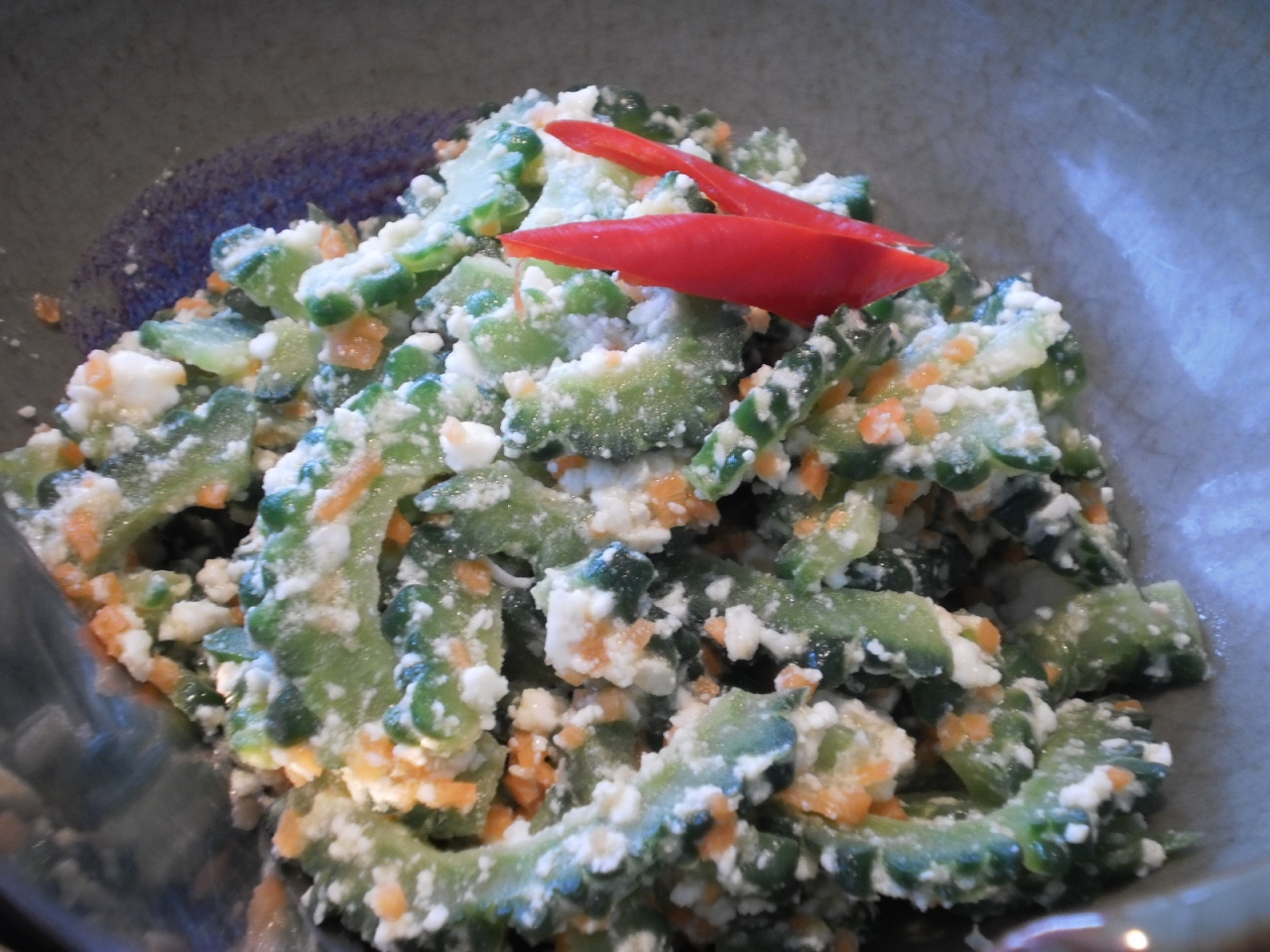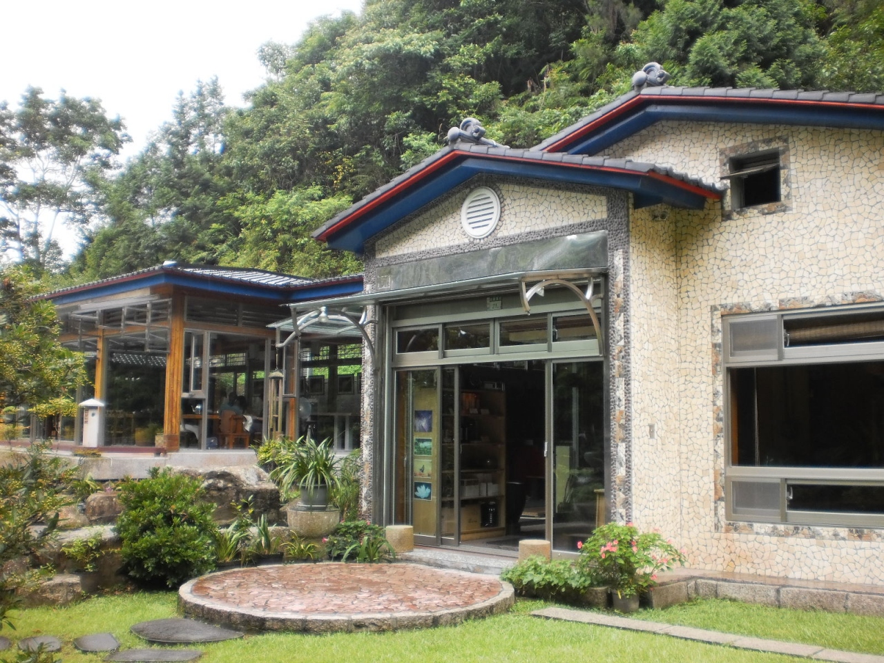 國道(高速道路)3號線から國道5號線に移り、坪林交流道で下り、目的地を目指します。脇道から逸れたやや急勾配の山を車で登り、停車場からその上にある隠れ家的な自宅兼餐廳に到着。屋内には、靴を脱いでのリラックス気分・・・。ウェルカム紅茶から始まり、コース料理の始まりです。食器類は、老板(オーナー)自ら、鶯歌で揃えたものです。