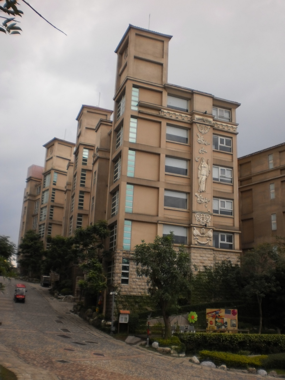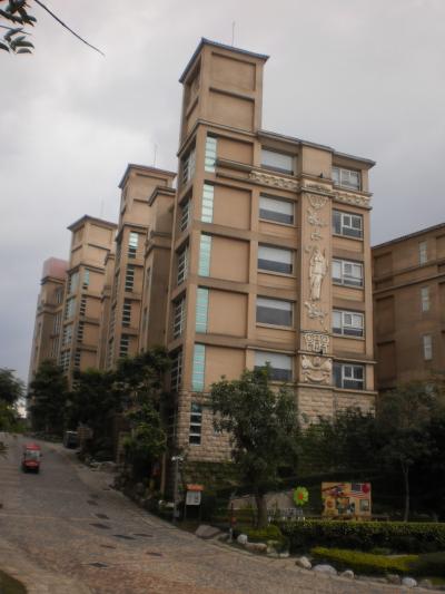 臺灣桃園縣楊梅市東森路(自前で付けた道路名?)3號にある東森山荘渡假(暇)村(イースタンヴィラ)ホテルへ、野外専用駐車場から接迎大樓(フロント・ロビー)まで、電気カート(YAMAHA製)で上に移動、15時にチェックイン開始、16時から山荘敷地内を約1時間かけて、ホテル主催のハイキング?ここは、ホテル区域と住居(別荘)区域に分かれており、壮大な一山を臺灣・東森集団がデベロッパーしたと認識しています。ハイキングに同行した臺灣の方の話だと、石畳の道路だけでも完成まで10年を要したと言っていました。