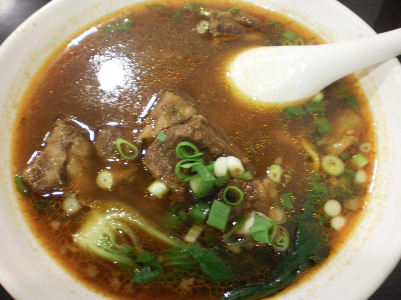 私は、紅焼半筋半肉麺もありますが、紅焼牛肉麺(中)で陽春麺をチョイスし、味は、まだまだ、修業中ですが、私のなかでは、上位にランクする美味しく、牛肉も柔らかく、濃厚な味でした。@110元(約310円)。