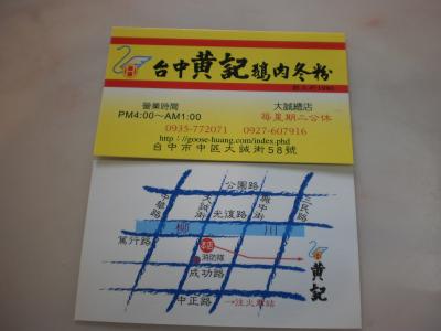 台中市で[我鳥]肉(おうろう:ガチョウ)の店といえば、臺灣の知人は、この店(黄記[我鳥]肉店)に連れて行ってくれました。台鐵台中車站に程近いようです。高速の出口「中港路」から東に車で15分くらい掛かりました。この店の対面の角に創始店があり、営業しています。くせも無く、肉もとても柔らかく、美味しいです。「[我鳥]肉」「[我鳥]肉拌飯」や「清冬粉湯(写真は、失念)」は、外せません。清冬粉湯は、出汁がよく出ていて、スープ代わりです。