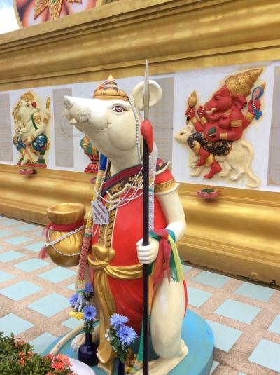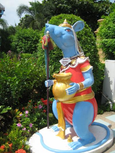 ガネーシャ像の周りには7つのネズミの像が設置されており、曜日ごとに色分...