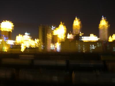 飛行機内での晩飯では足りず、超市の場所聞くも、周りには何も無いとの話。そういえばロビーの端にパン、カップ麺、飲み物を置いた超市エリアが有る。8時程度で外を歩いてみたくなり、スタッフに超市の場所を聞くも、”ここと大差無い小さな所が600m先に有り、その先は無い”との事。歩いてみました。往復1.5時間。超市を3軒発見。もうひとつ1km先に灯りがあったので見ると洗浴。遊べるかと思ったら、中からパジャマ着た女の子達が洗面器と着替えを抱えて家路に向かうとうな所。毒気抜かれてそのまま帰還しました。朝7時の送迎バスに乗ると、美人2人を含む4人の女性が乗っていました。夜分、東方航空社員?身なりも良かったので、その後同じ系列のホテルを経由して空港へ。そこでは外人(白人)8名を含む大勢が乗ってきて立って向かう有様。あれは定員オーバーだろうな。無料かどうかを必死に確認する白人共に運転手が答えられず、バス内からフリーだ、の声。結構英語が通じる世界でした。- 旅行時期