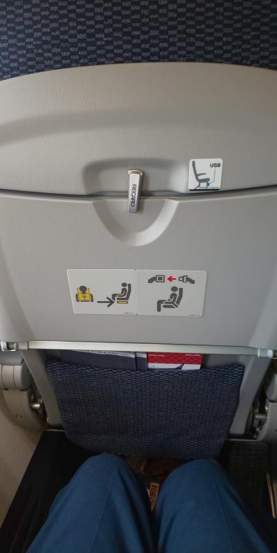 座席の間隔はこんなものかな。膝がネットに付かないだけマシかな。
