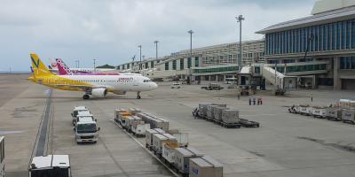那覇空港に到着。ランディングがとても凄かった!ドンドンと二回激しい振動...