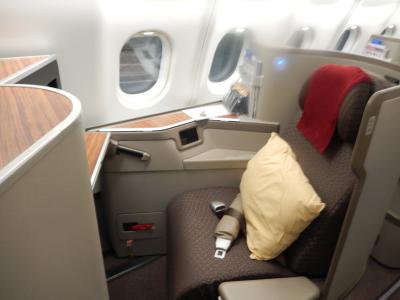 3.0新しい機材になってました。1-2-1です。ヘリンボーンです。進行方向に向かって右側の前から2列目の一人席。隣が居ないのは良いのですが、座席が斜めになってるので先...もっと見る