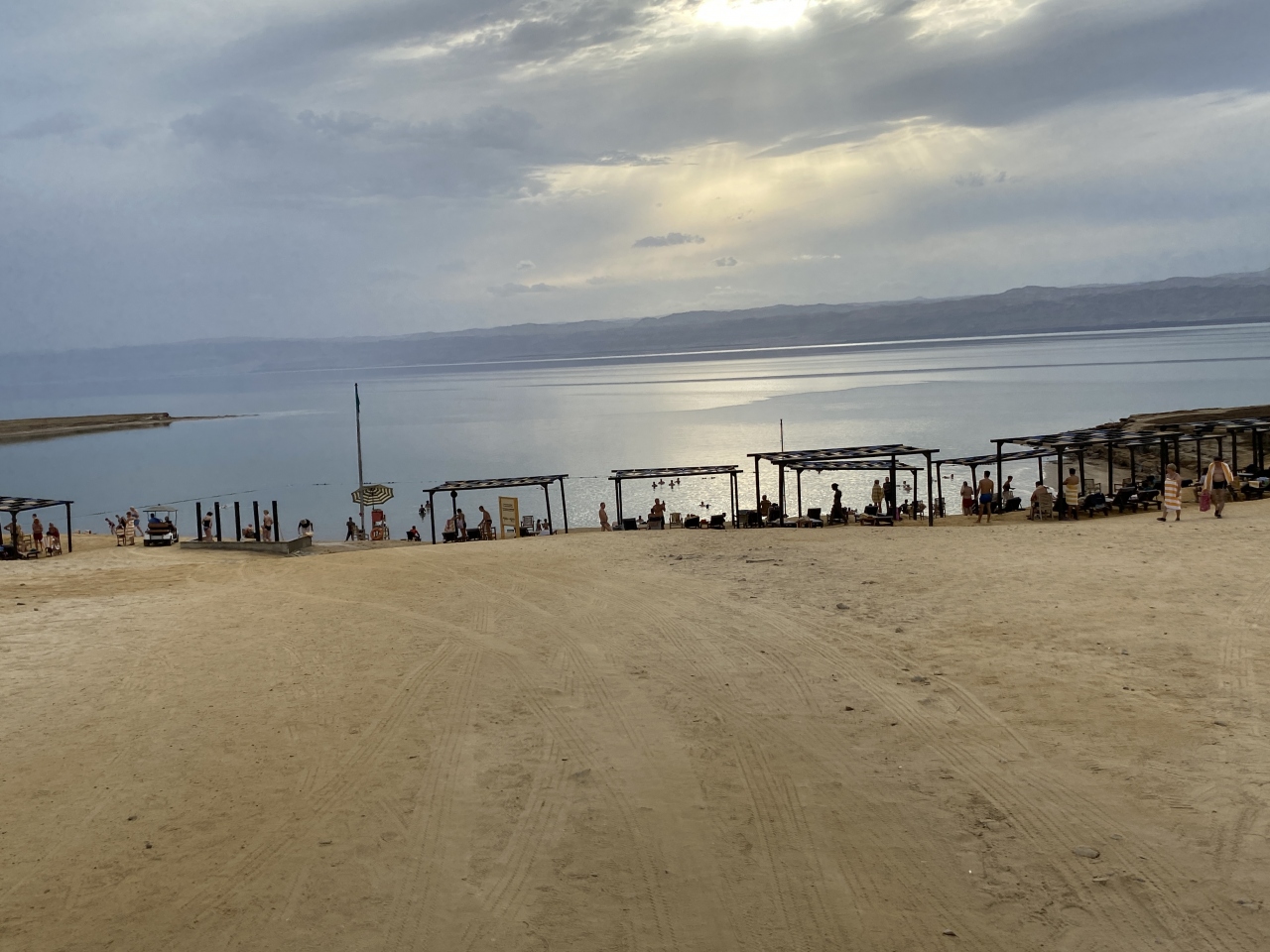 死海は海と言うより湖みたいな感じなので、周りは岩山で砂浜部分や足の着く部分には結構大きな石があります。でもすぐ足が付かなくなり勝手に体が浮く感覚はとても新鮮で面白です。9年前はここまで死海だったという看板があり、今のビーチはそこから100m以上先なので死海が急激な速度で後退しているのには驚きました。- 旅行時期