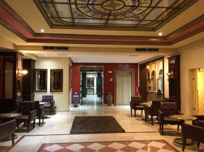 ロビーはとても広くて洗練された感じでした。部屋はツアーなので少し狭い感じは否めませんでした。ホテルの向かい側には美術館があり、近くにはモスクもあるので