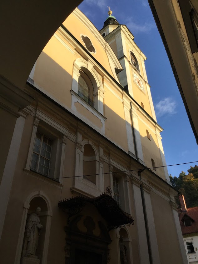ザグレブの首都、リュブリアナの中心地にある聖フランシスコ教会の前から