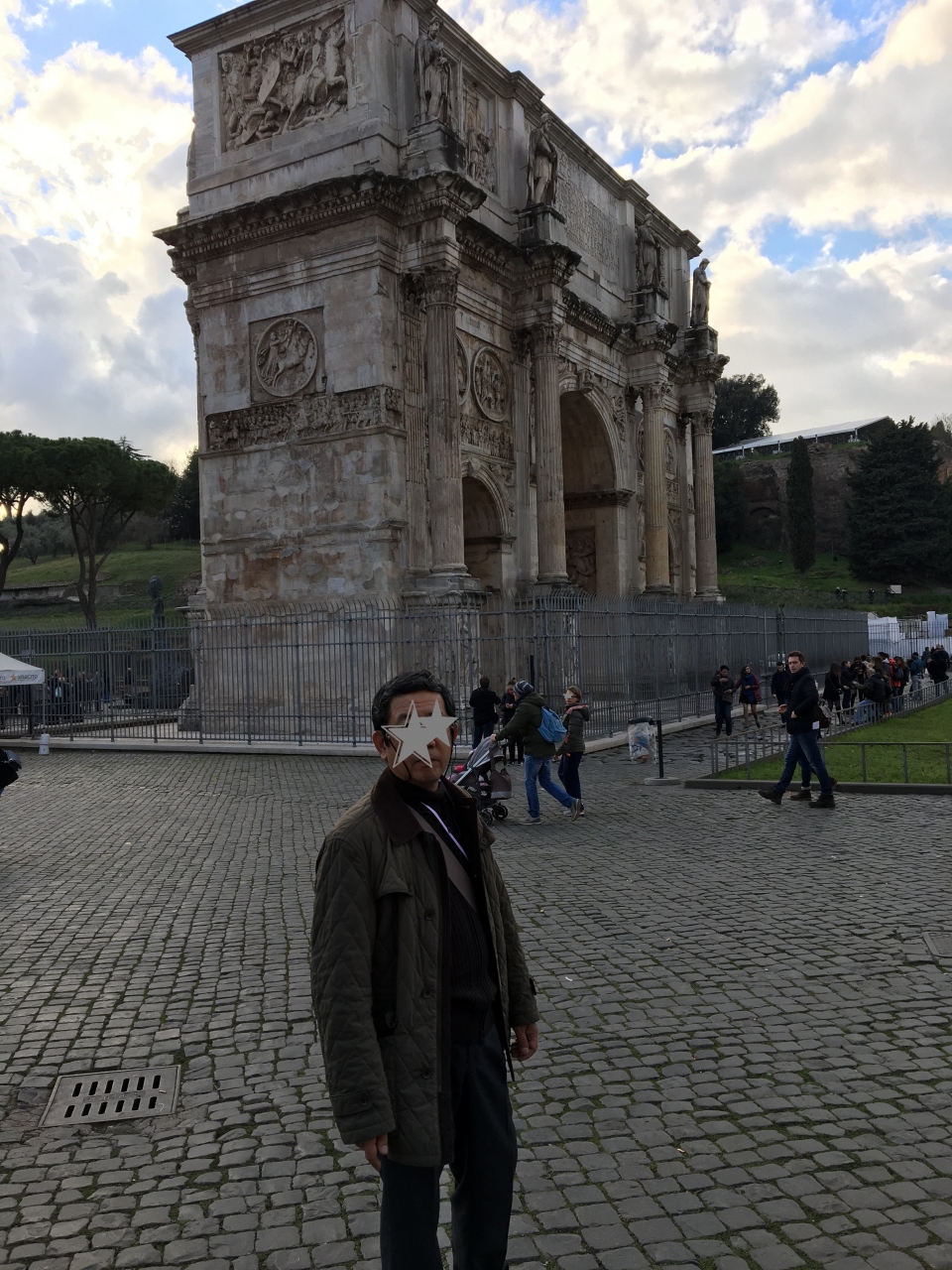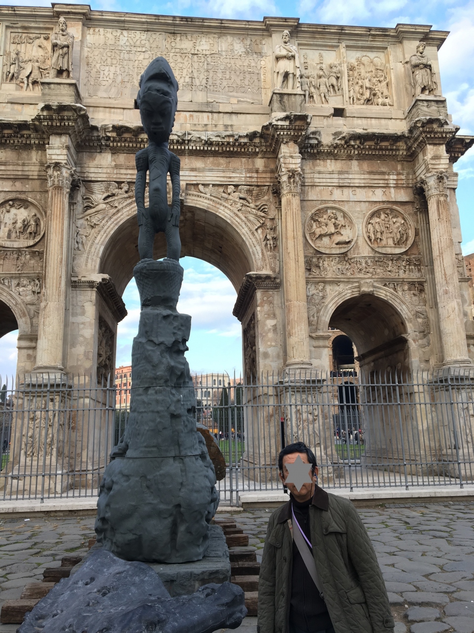 ローマの誇る世界遺産コロッセオの前に堂々と聳える凱旋門