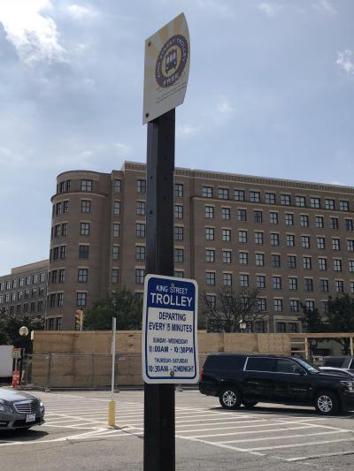 KingSt駅から無料のトロリーバスに乗ってアレキサンドリアのオールドタウンに行きます。