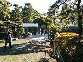東京メトロ竹橋の駅が一番近くです。地下鉄を出ると竹橋を渡って国立近代美術館、国立公文書館を過ぎると次に出てくる橋が北桔橋門に行く堀にかかる橋です。北桔橋門か