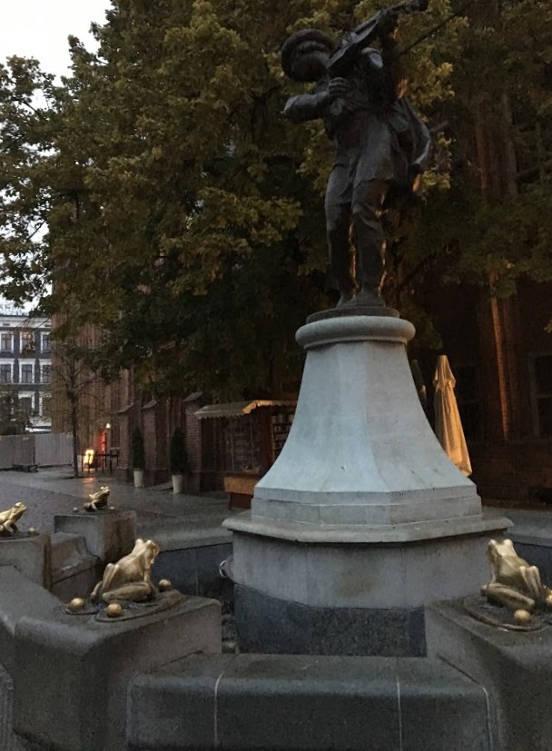 人通りの多い広場に出てきます。広場の端に何故かロバのブロンズ像がたっています。