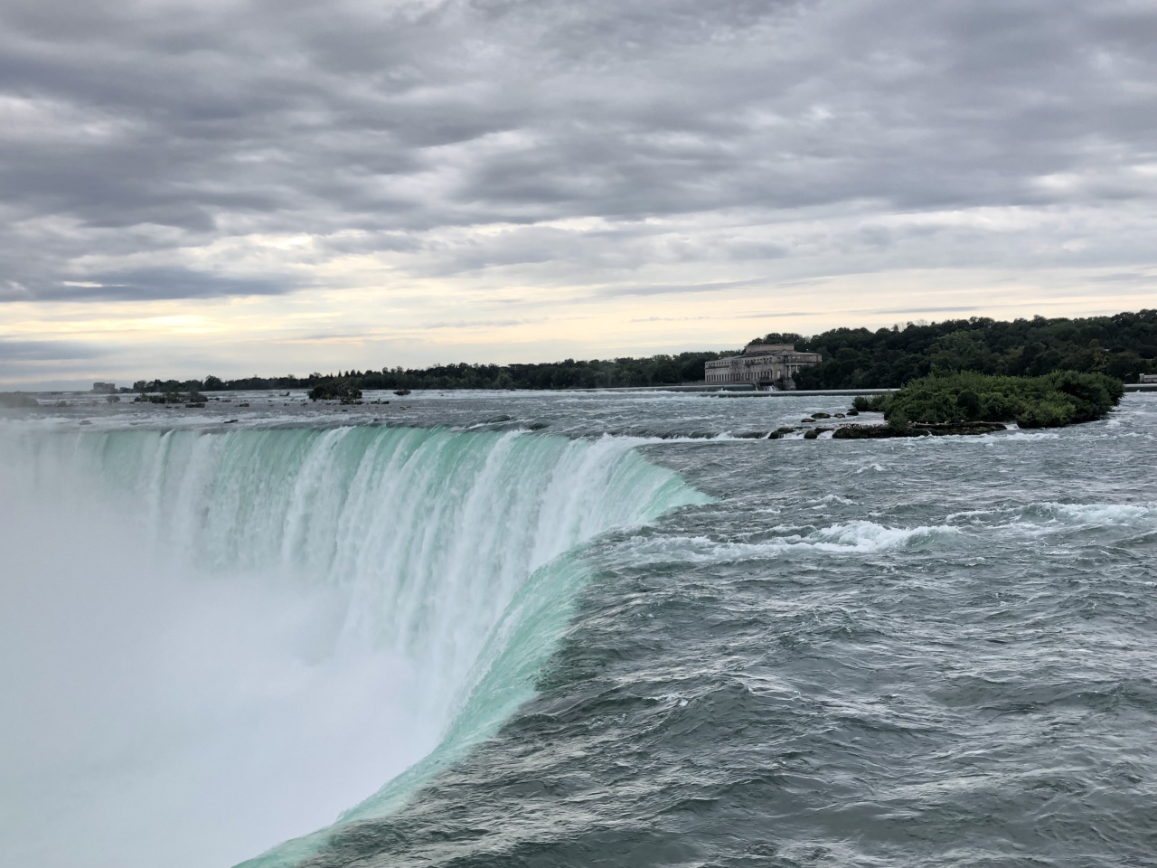 ナイアガラの滝、カナダ側にあるビュースポットで、カナダ滝の滝口から滝壺に流れ込む様がすぐ近くで見られる場所です。とっても迫力があり流れ込む水の勢いや量には