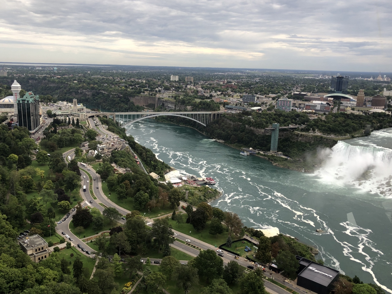 アメリカ滝、カナダ滝が観られます。展望台にはレストランがあるのでかなりの人が上がりますがエレベーターは二台しかないのに加えあまり大きくないので、展望台に上がるのに15分ほど待ちました。- 旅行時期