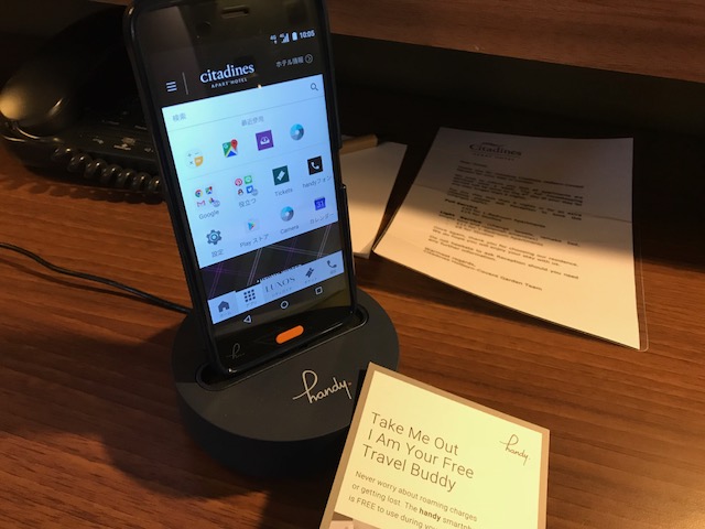 あと、今回このホテルに泊まって一番便利だったのが、「handy」というアンドロイド端末があったこと。
