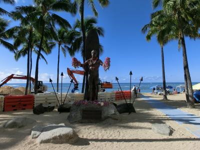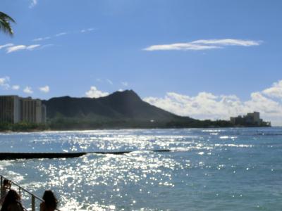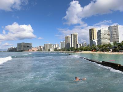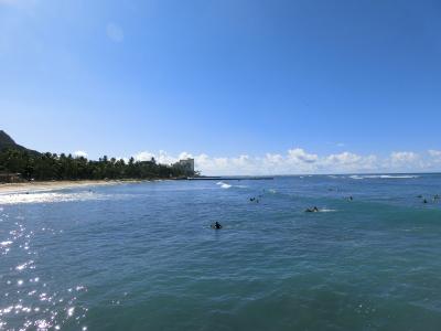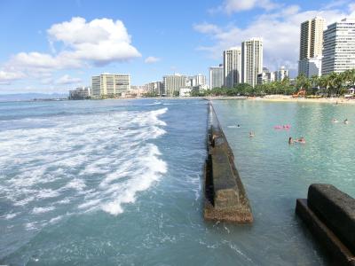 ふたたびビーチにおりて。ワイキキウォールです。海に突き出た防波堤のよう...