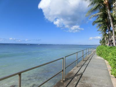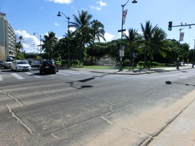 ハレクラニとシェラトンワイキキの間の道を通ってビーチへ出ます。