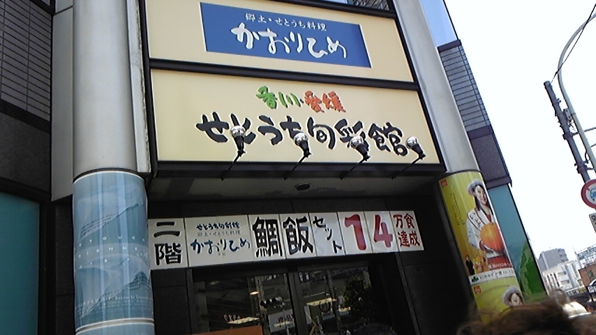 せとうち旬彩館は、新橋駅から2分程度のところにある、愛媛・香川の観光センターです。1Fは買物、2Fは食事のような感じに分かれていて、私はまず2Fで讃岐うどんを食べました。さすが本場のうどんとあってとてもおいしかったです。そして1Fでは、おみやげを買い、四国気分を味わって楽しめました。
