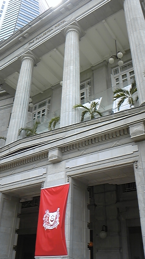フラートンホテルはラッフルズプレイスから5分ほどの高級ホテルです。本家マーライオンからすぐのところにあり、観光客もたくさんいます。マリーナベイサンズもよく見えるとても便利なホテルでした。シティホールへも地下を通って、暑さをしなぎながら繁華街へも行くことができます。