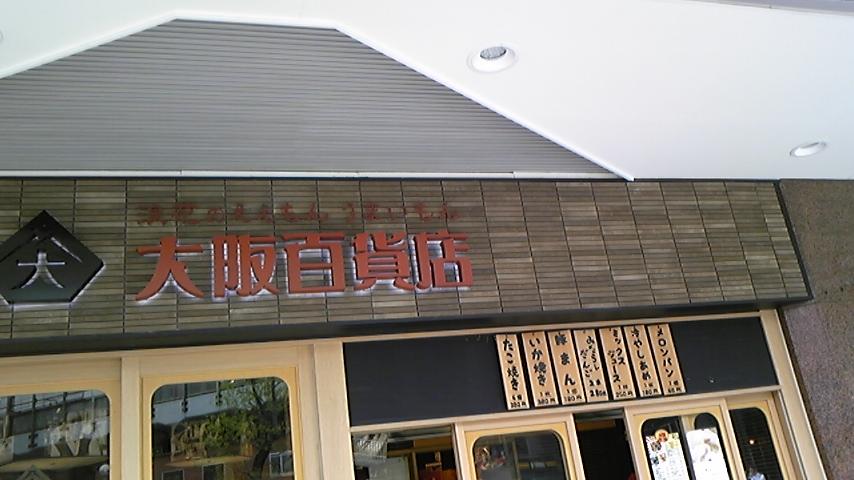 大阪百貨店は、有楽町駅前にある大阪名産を販売しているおみやげコーナーみたいなところです。しかし、外から見ると一番目立つたこ焼きしかイメージがなく、買物というよりお食事どころとなっています。たこやきの他、いか焼き、どて焼きといった、いかにも大阪という食べ物を気軽に安く食べられるのがうれしかったです。