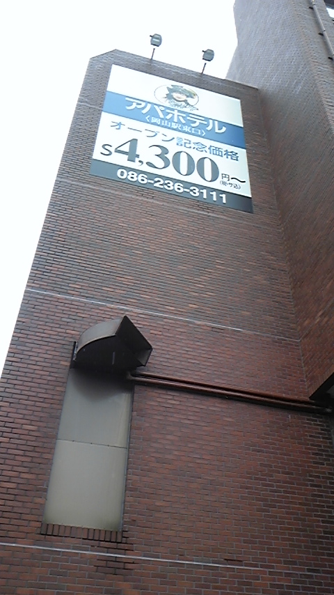 アパホテル岡山駅東口は、岡山駅から8分ほどのビジネスホテルです。写真のようにキャンペーン価格で安く泊まりました。『アパホテル』ということの安心感もあり、部屋も思ったとおり快適に過ごせました。少し周辺がさびしい場所なので、宿泊以外(食事・買物)も楽しみたい人は、駅周辺でまとめてやった方がいいかもしれません。