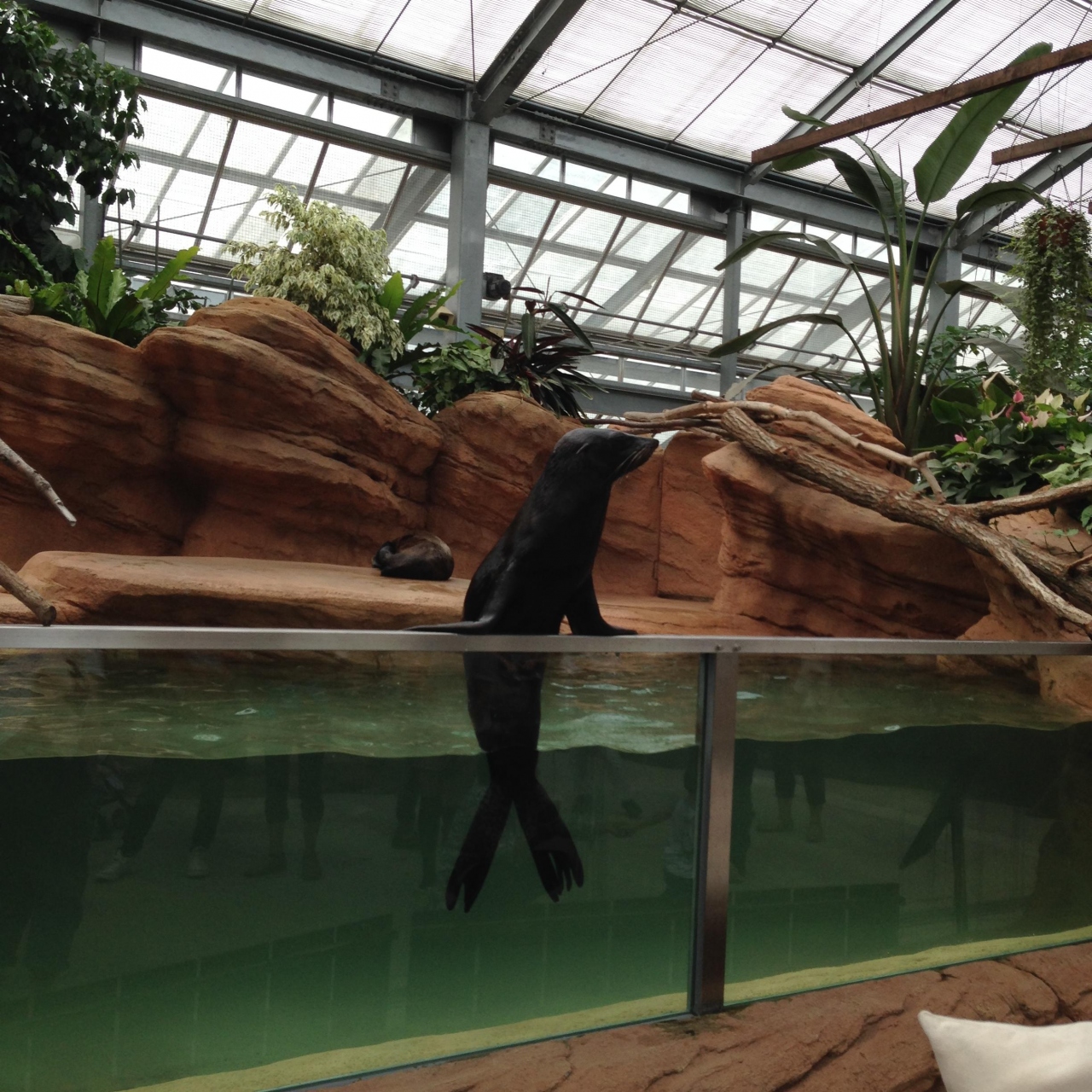 アザラシやオットセイが人懐っこく、なんども近くに来てくれるし、アザラシは円柱の水槽ゾーンで顔を出し、手を振ってくれるサービスぶり。