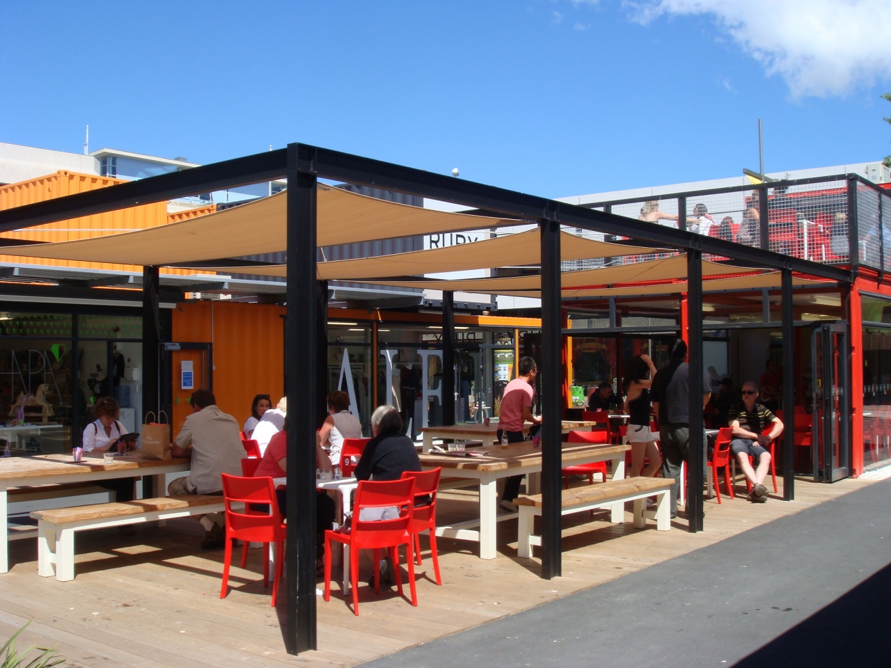 クライストチャーチのCityには、バレンタインを中心にコンテナで作られた店舗が並ぶモールができています。
