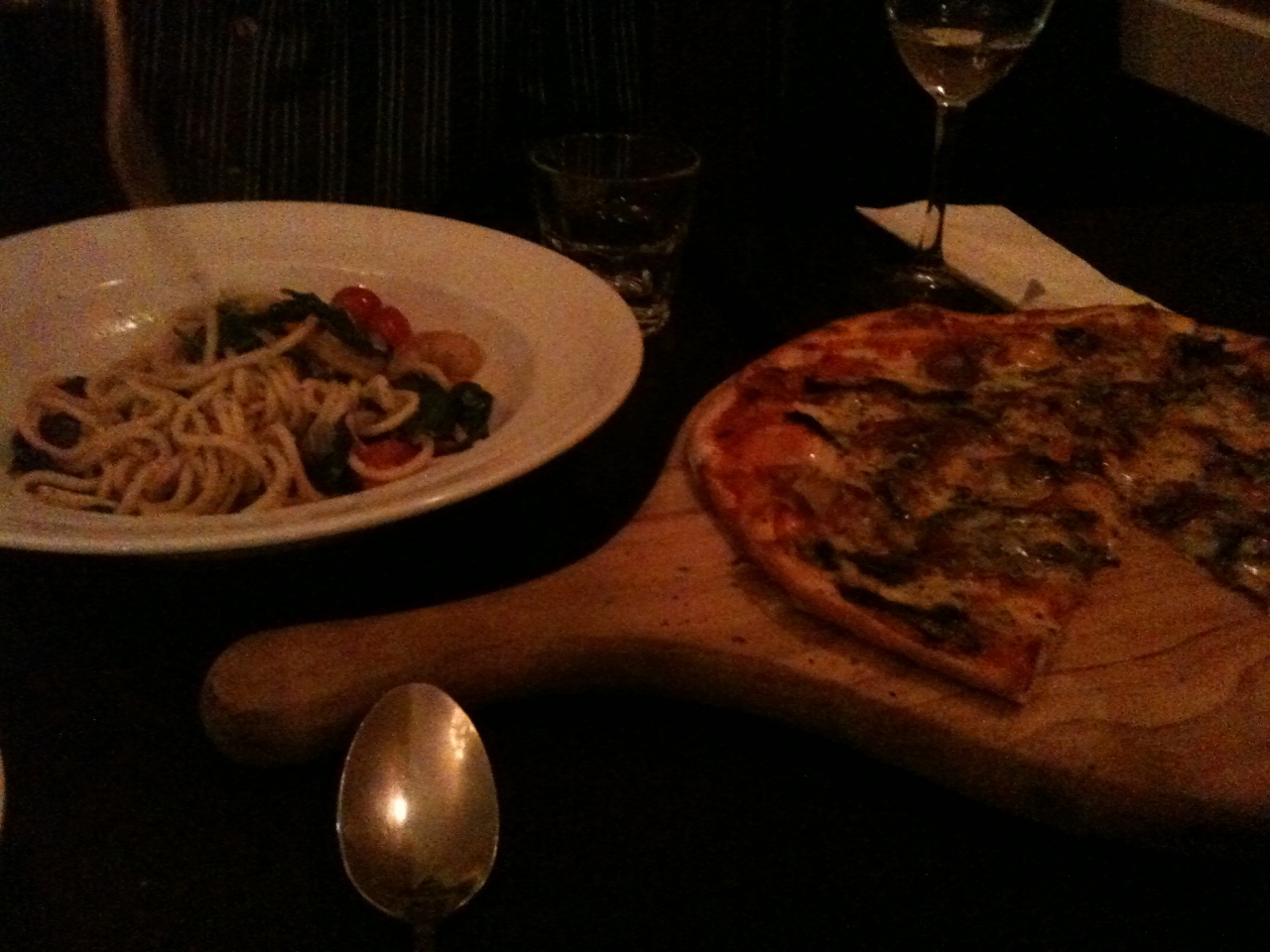 ピザおいしー!やっぱり薄生地がいいです。パスタは、味は美味しかった・・・けど茹で過ぎ!