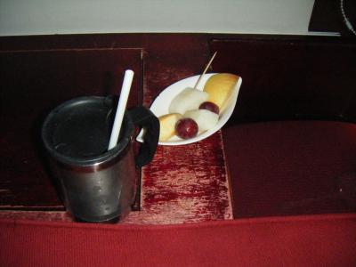 ドリンクとフルーツのサービス付き。日本語メニューもあります。- 旅行時期