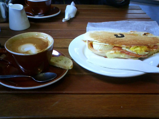 途中バスはカイコウラで30分ほど休憩を取りました。このスキにカフェでコーヒーとサンドイッチを買ってつまむ。