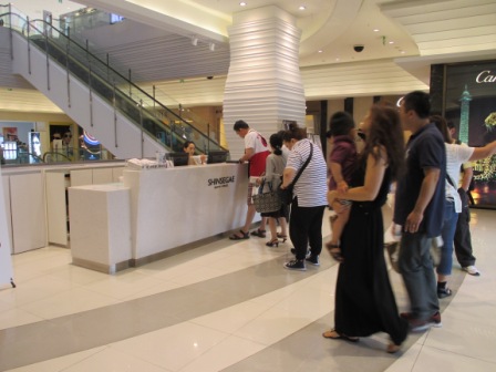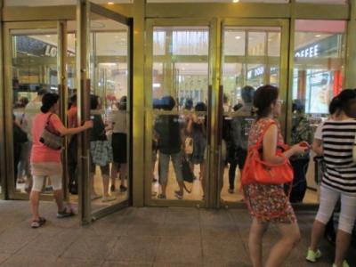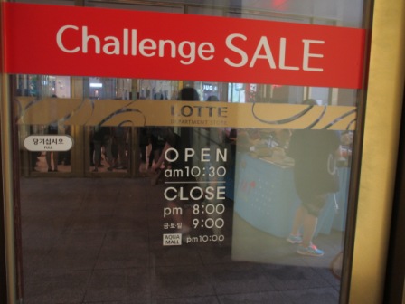 ロッテデパートの専用エレベーター(沢山並んでいるうちの左側)を使用して上がります。