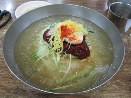 ハルメカヤミルミョン 日本の冷麺に近い麺 氷が入っていて冷や冷や