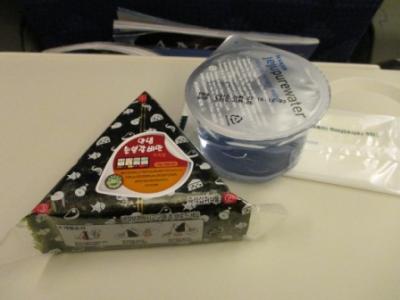 エコノミーとはいえ3万円以上払って、しかも夜の便なのに出される食事がおにぎり1個と水だけ!